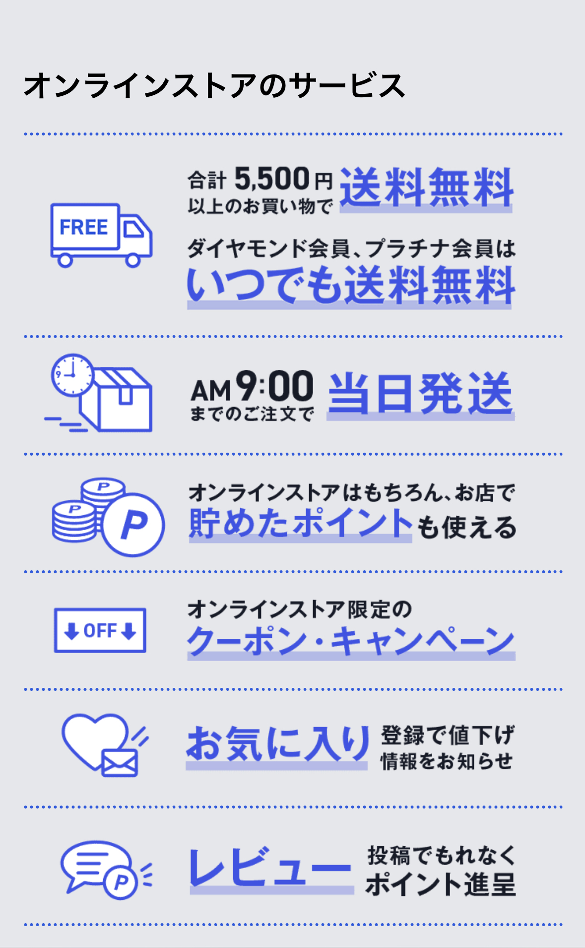 ・送料が5500円以上で無料 ダイヤモンド会員やプラチナ会員ないどは無料